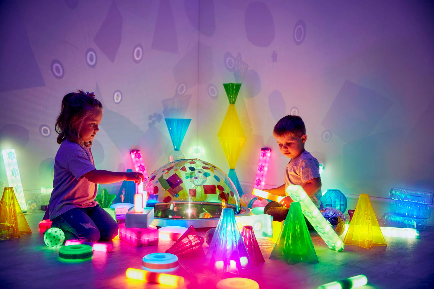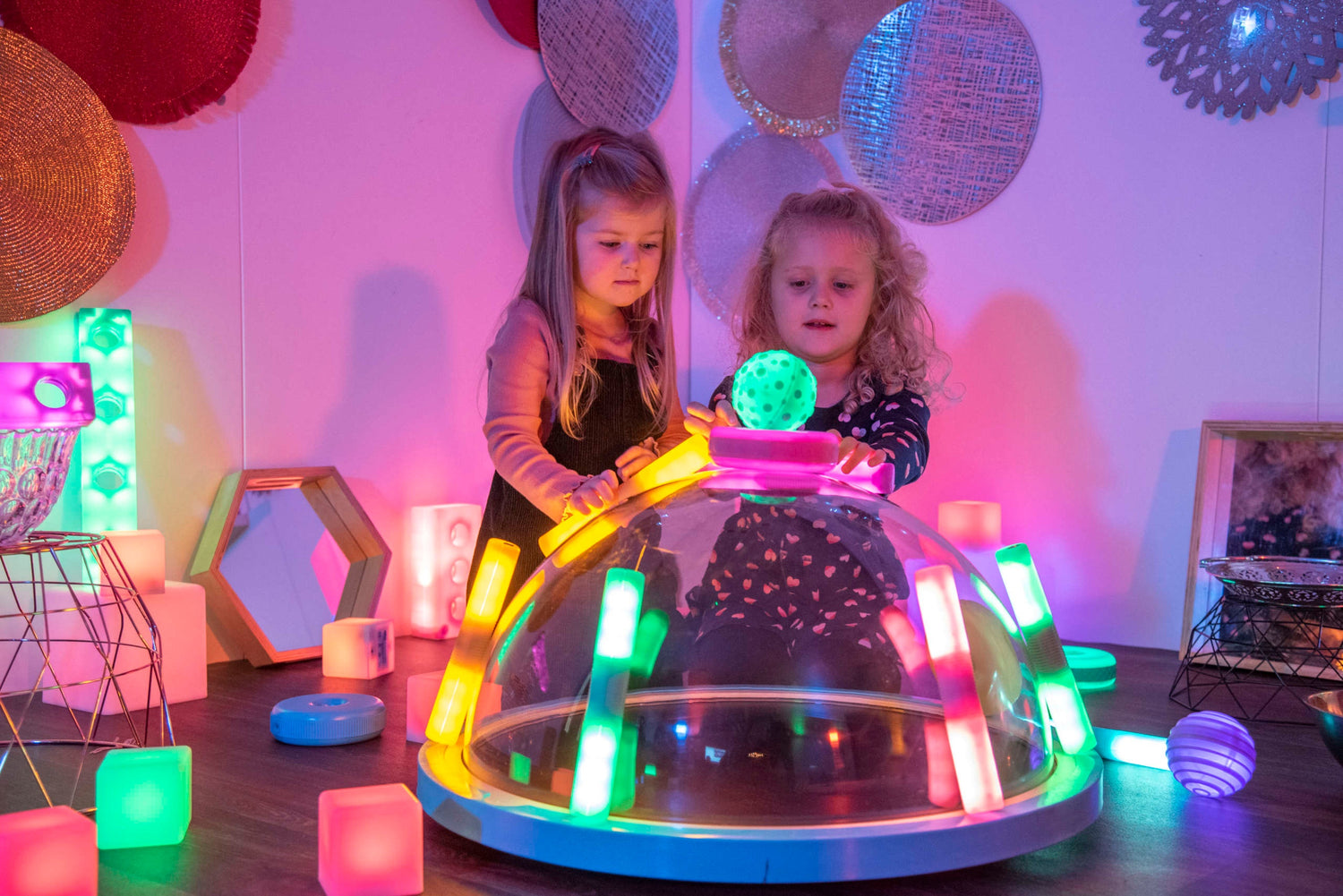 Uzlādējams kupols, kas rada telpu piepildošu gaismas efektu un atbalsta mierīgu atklājumu spēli.