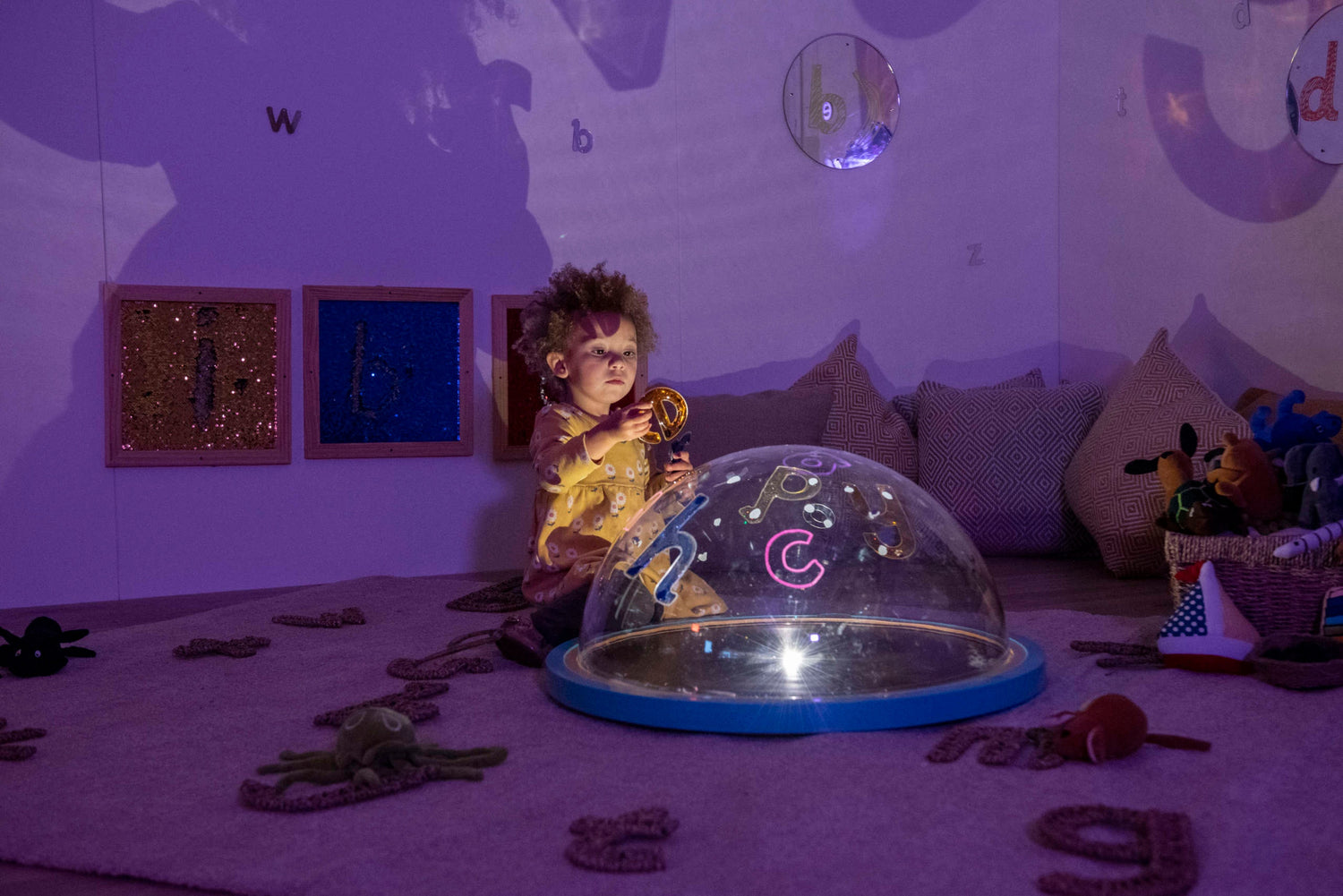 TTS kupola projektors ir uzlādējama gaismas kupola, kas rada apgaismojumu un ēnas uz sienām un griestiem. Bērni var novietot priekšmetus uz kupola vai zīmēt uz tā, lai pētītu gaismu, ēnas un krāsas. Izmantojiet to stāstu stāstīšanai, maņu spēlēm un MATIK aktivitātēm. Piemērots bērnudārziem un agrīnās izglītības iestādēm no 10 mēnešu vecuma.