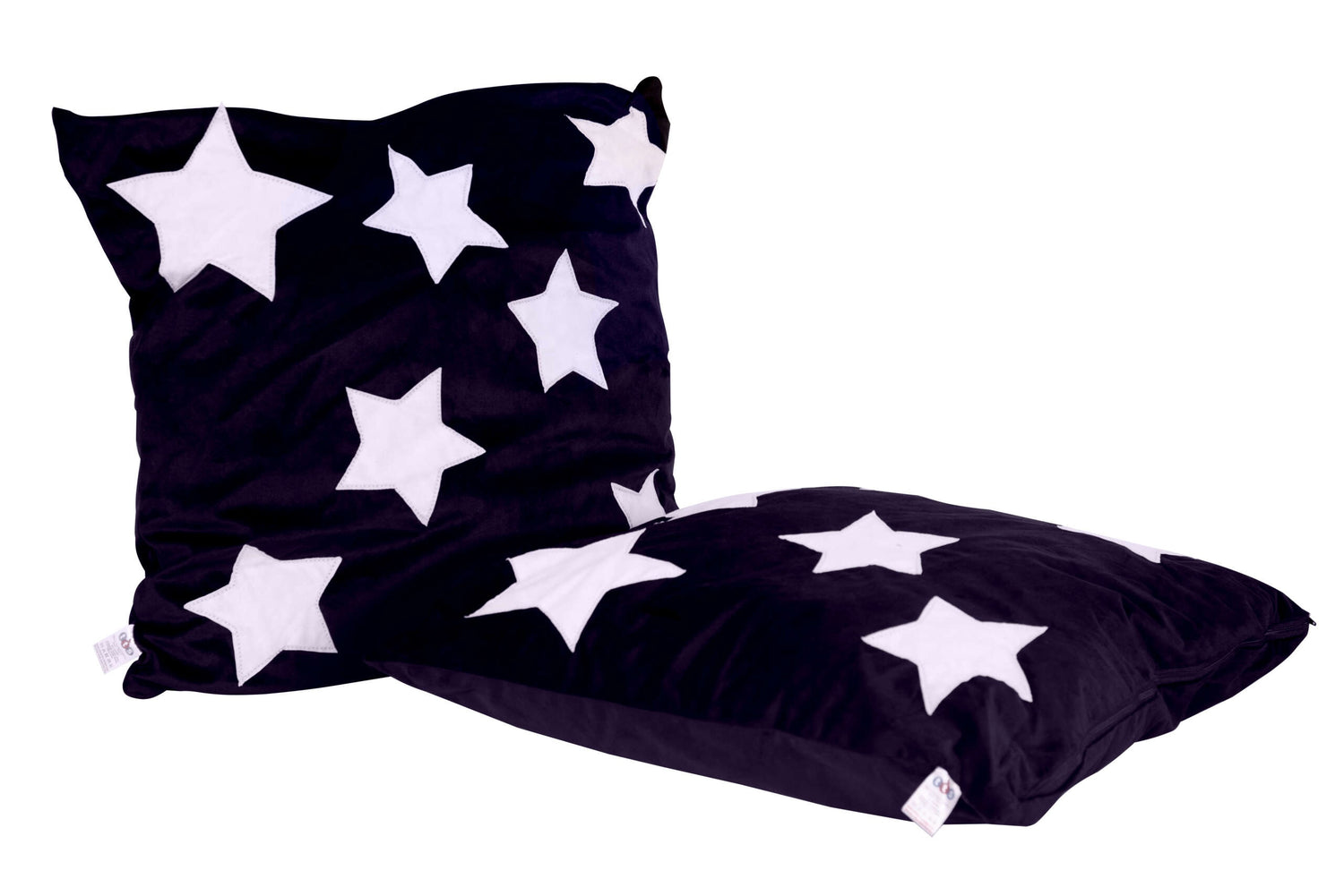 Melnas krāsas TTS spilveni (2 gab.) ar gaismas efektiem tumsā nodrošina ērtu sēdēšanu sajūtu telpā un lasīšanas stūrītī. Vienā pusē ir tumsā spīdošas zvaigznes, bet otrā pusē ir vienkrāsaina virsma, lai bērns varētu izvēlēties sev piemērotāko. Augsta blīvuma putas nodrošina atbalstu sēžot un guļot. Noņemams pārvalks ir mazgājams 30 grādu temperatūrā, lai mācību līdzekļi būtu tīri.