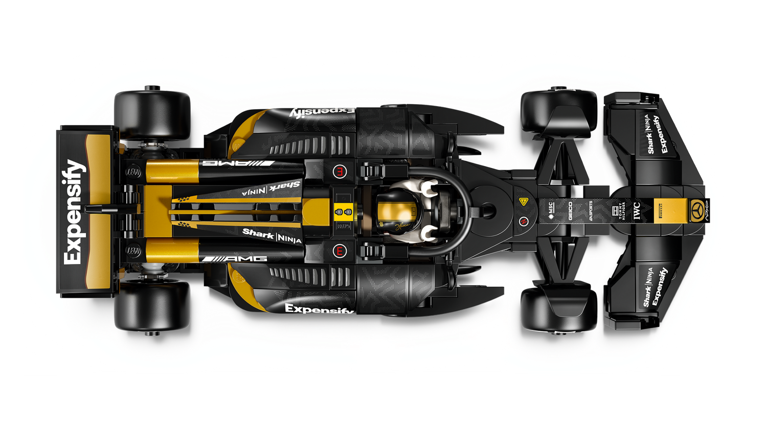 Autentiskas detaļas — F1® rotaļu automašīnai ir dizaina detaļas no filmas automašīnas, tostarp melna un zelta krāsojuma shēma, sponsora uzlīmes un platākas aizmugurējās riepas ar uzrakstu “Pirelli”.