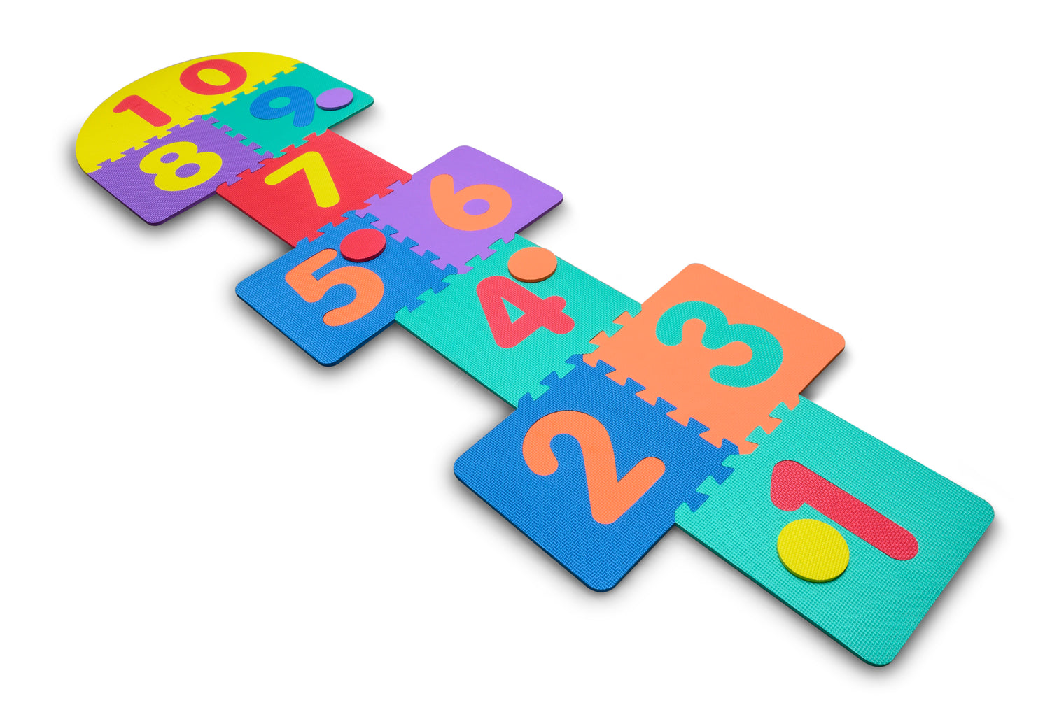 Sastāvs: 10 triecienus absorbējošas EVA šūnveida plāksnes, 4 marķieri.