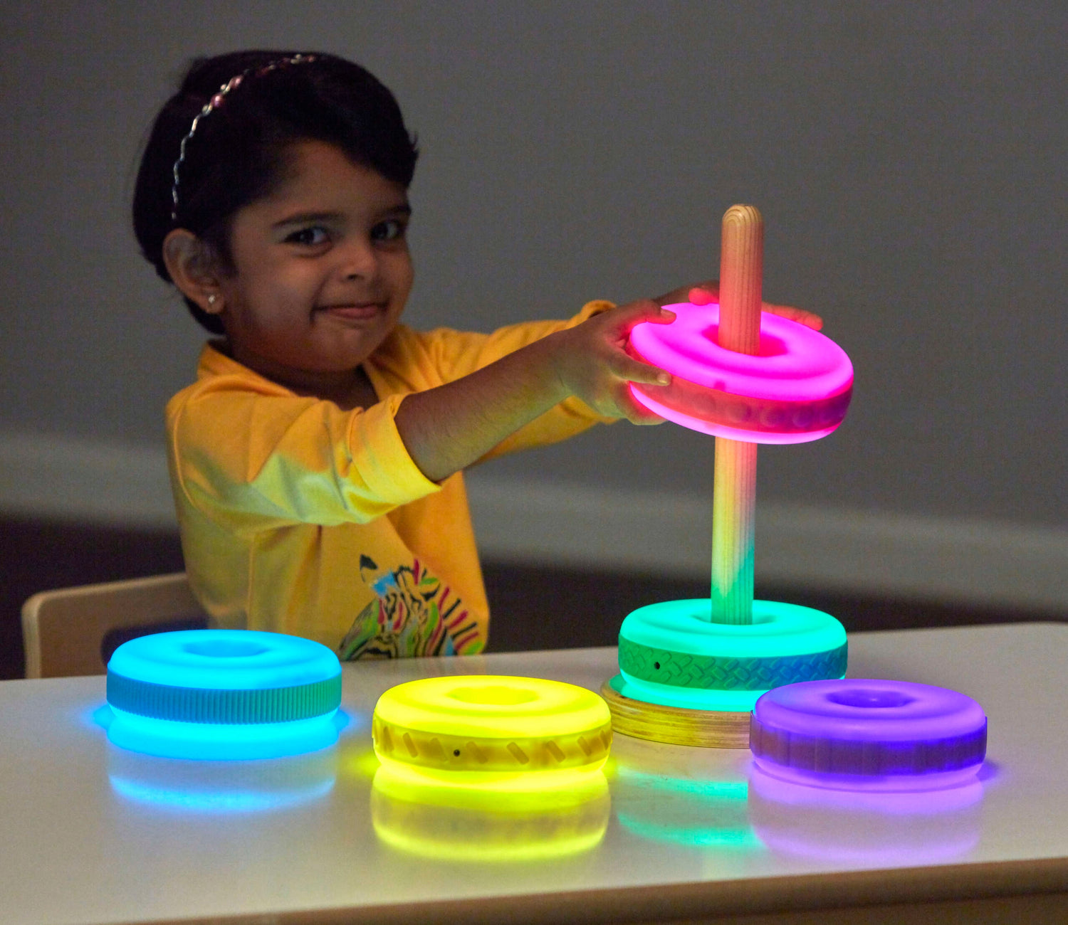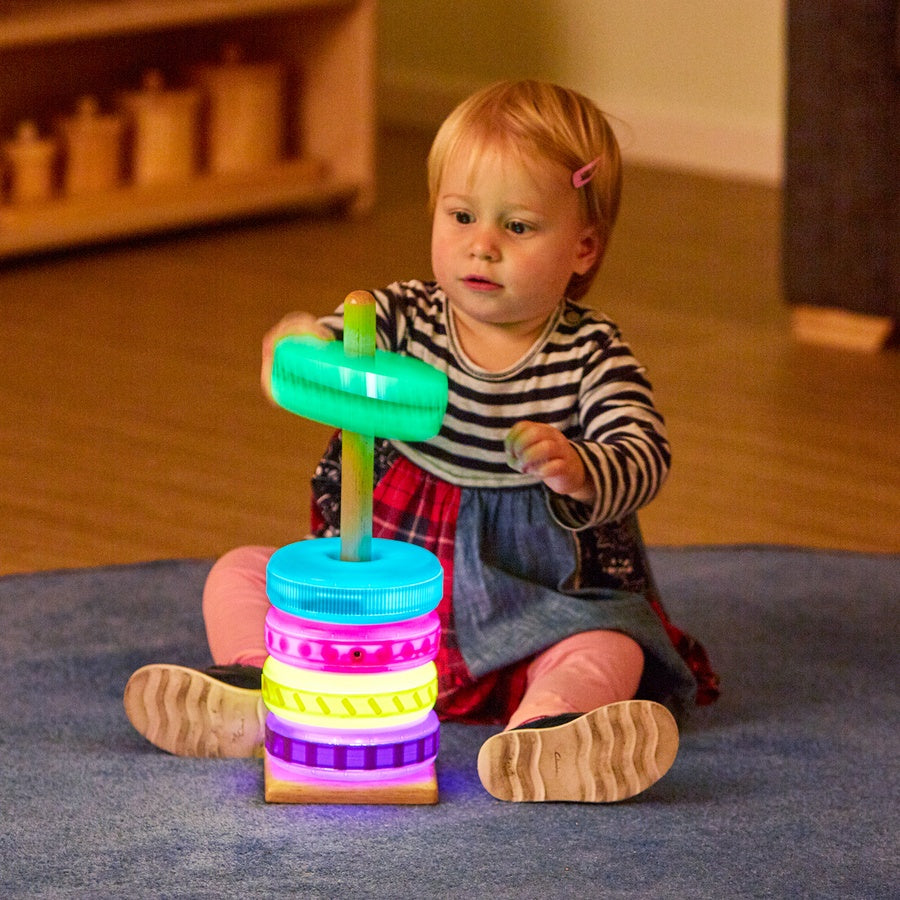 Vienkāršs koka stabs pārvērš spēli ar spīdošiem gredzeniem par mērķtiecīgu kraušanas un vīšanas vingrinājumu.