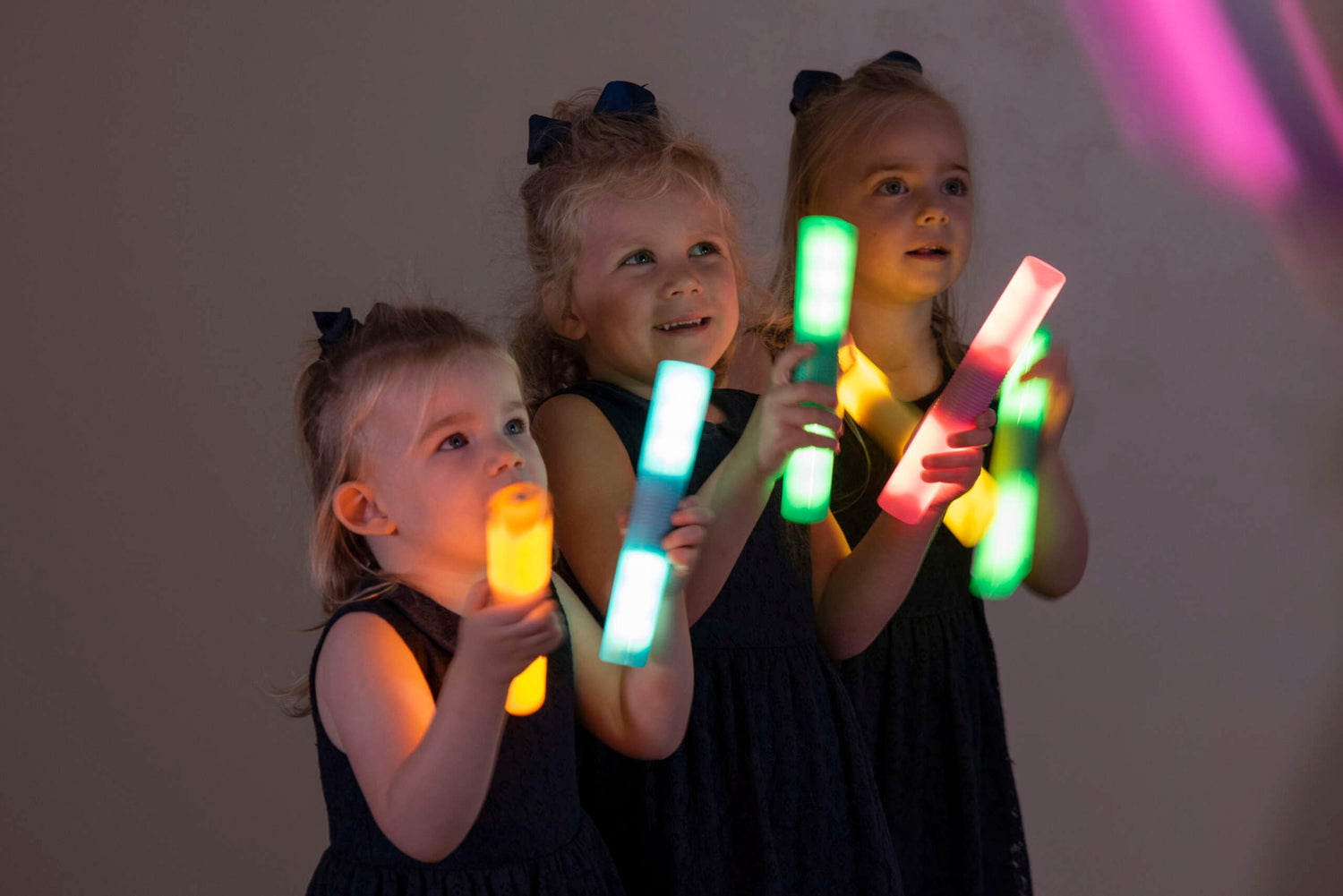 Koputamisel süttivad silindrid lisavad värvi veeretamise, lükkimise ja ehitusmängu juurde.