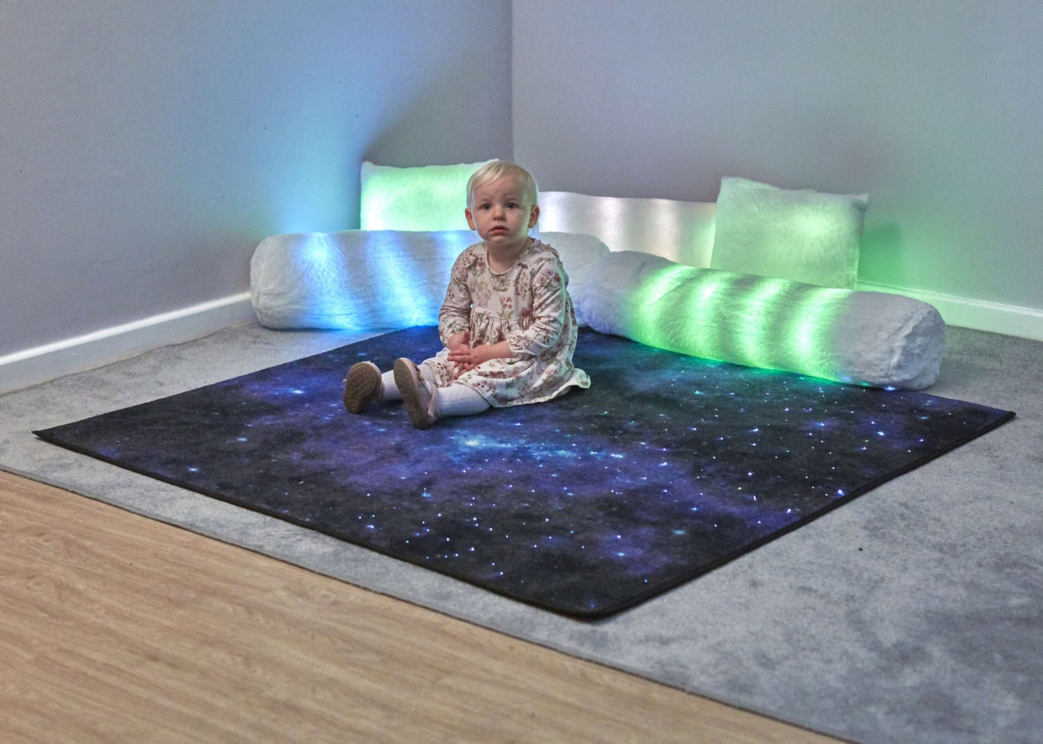 Puudutusega aktiveeruv sädelev vaip lisab tunnetustoale rahulikku liikumist ja visuaalset fookust.