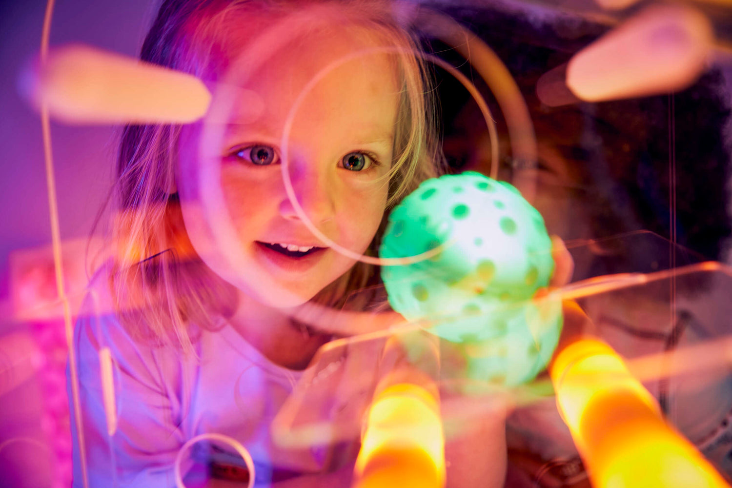 Teksturētas, spīdošas bumbiņas atbalsta nomierinošu sensoriku un smalko motoriku.
