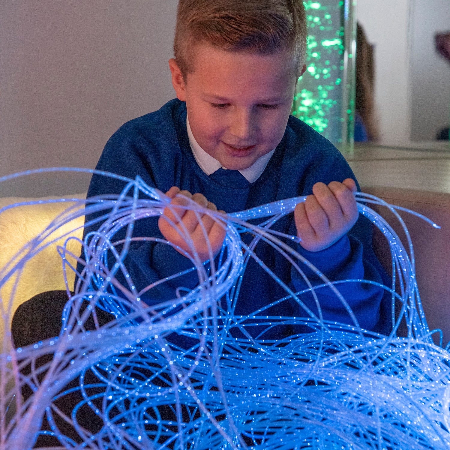 Optiskās šķiedras un krāsu mainošs gaismas avots piešķir mācību videi drošu un interaktīvu sensorisku gaismu.