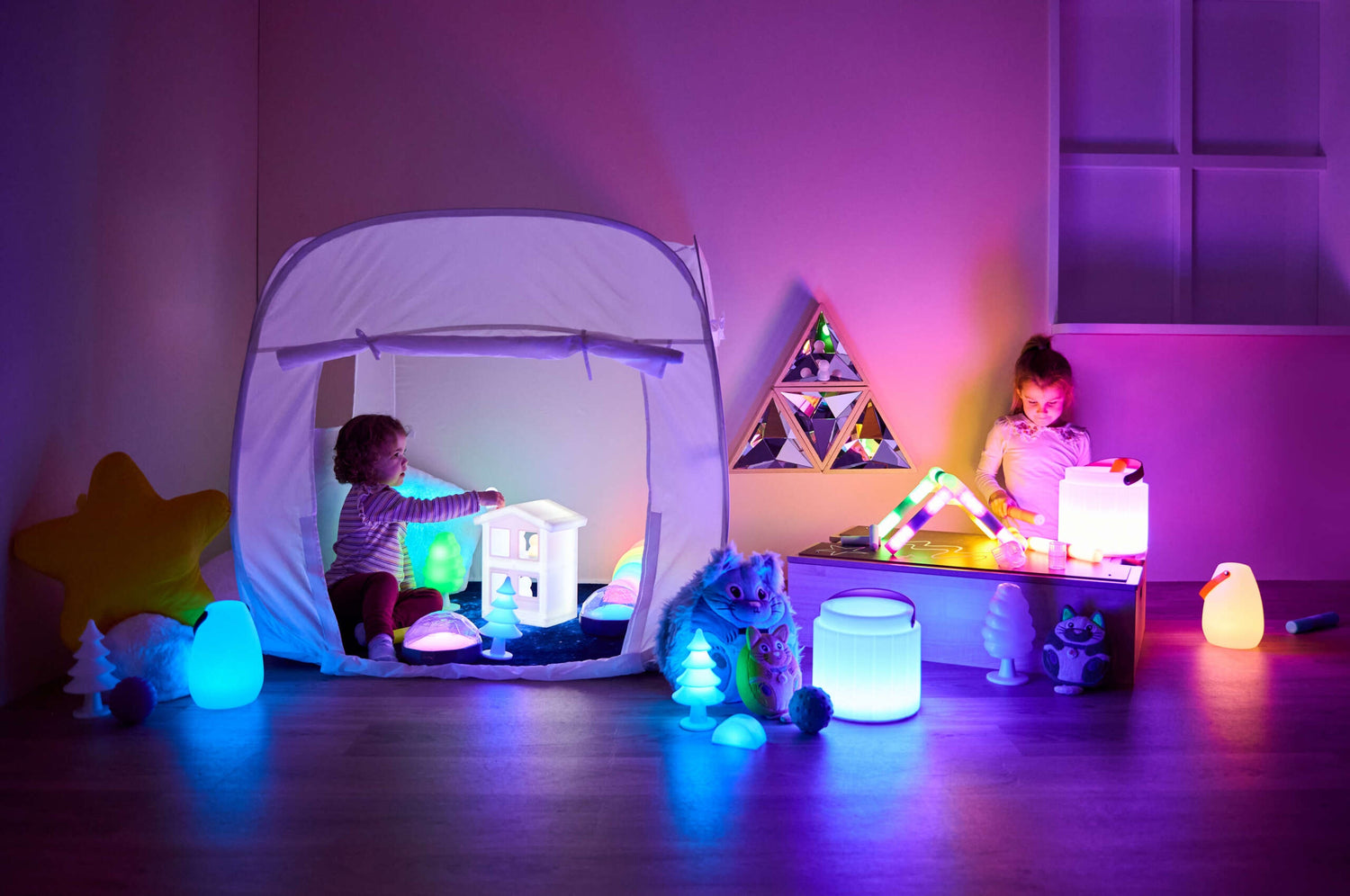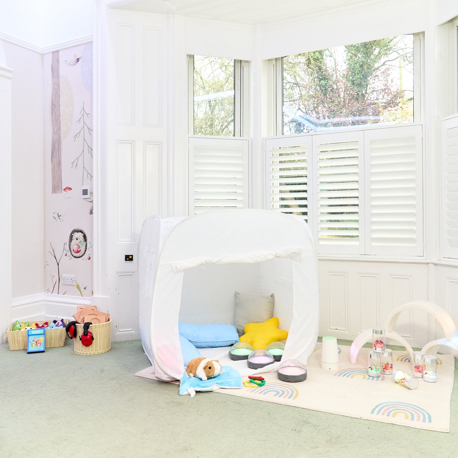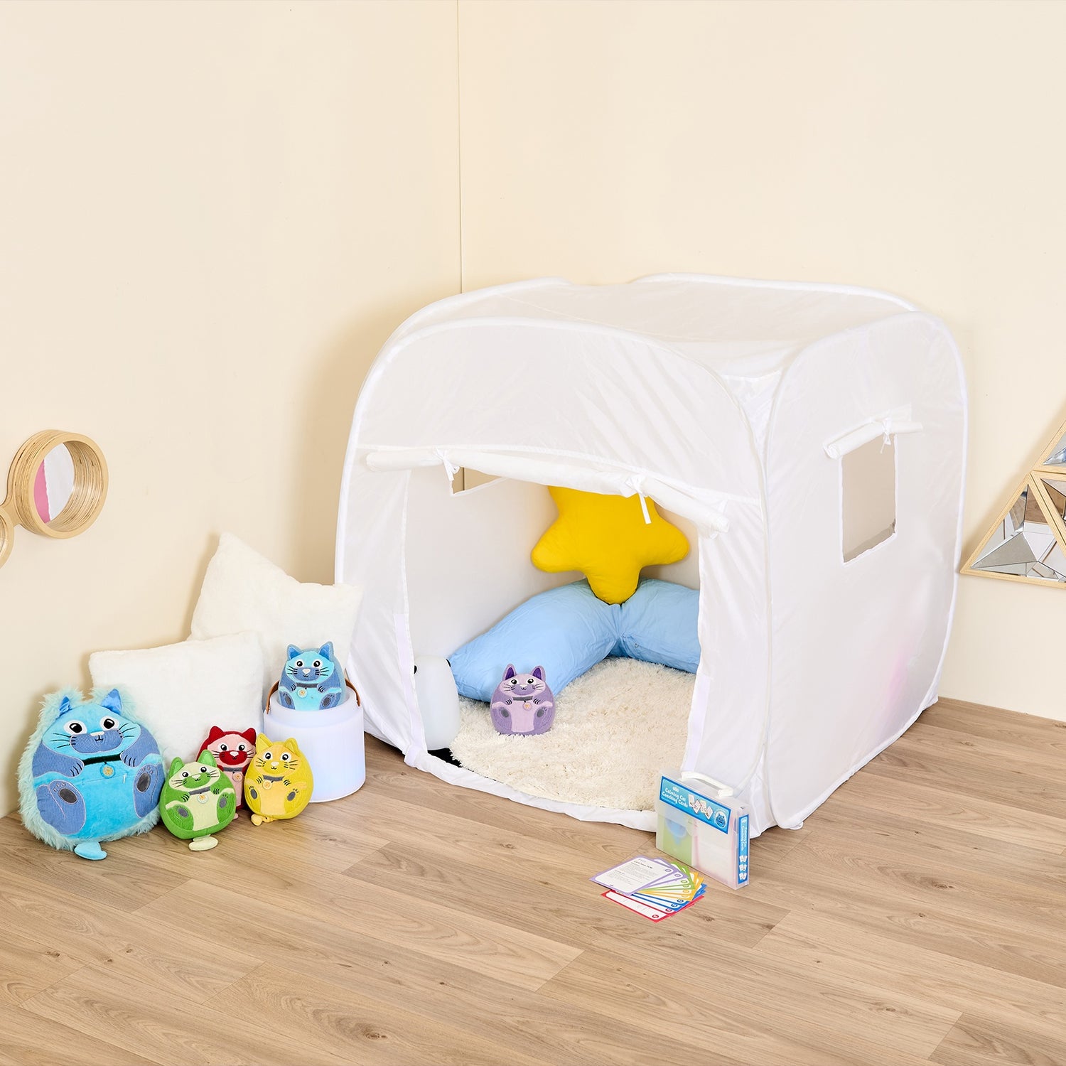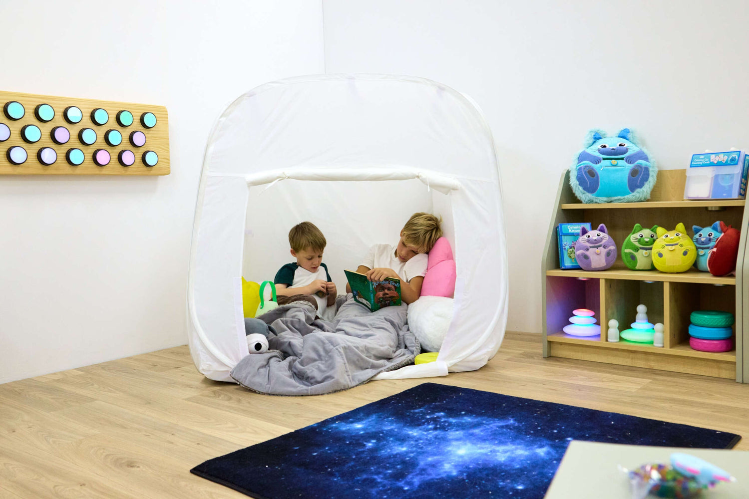 Ātri atverama ligzda atbalsta nomierināšanās rutīnu un personalizētu sensorisku ievadi jebkurā mācību telpā.